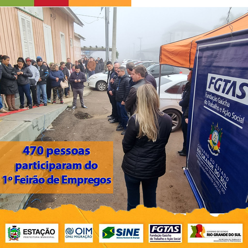 🤝O sábado 15/7, ficou marcado pelo 1º Feirão de Empregos, que aconteceu no Largo Adão Flores de Oliveira. A iniciativa da Administração Municipal, Secretaria de Assistência Social, contou com o apoio da Secretaria de Trabalho e Desenvolvimento Profissional e sua vinculada Fundação Gaúcha do Trabalho e Ação Social (FGTAS), que disponibilizaram as suas estruturas de atendimento para o evento. Parcerias que geram desenvolvimento!