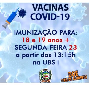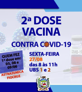 2ª DOSE da IMUNIZAÇÃO contra COVID-19 para MUNÍCIPES que REALIZARAM a 1ª DOSE em 30/07.