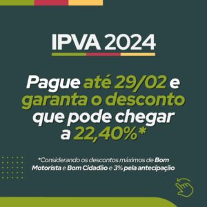 ‼️Último dia para garantir os descontos de fevereiro na quitação do IPVA 2024!