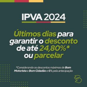 … Quem optar pelo parcelamento em 6X tem descontos nas 3 primeiras parcelas: janeiro (6%), fevereiro (3%) e março (1%)..Importante lembrar que contribuintes que optarem pelo parcelamento do tributo pelo Pix precisam gerar todo mês um novo QR Code para o pagamento..Já para quem quiser quitar o tributo em janeiro o valor pode reduzir em até 24,80%, acumulando os descontos