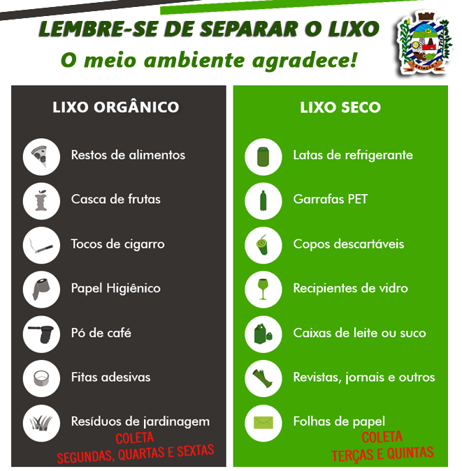 🚮 Resíduos Orgânicos: SEGUNDAS / QUARTAS e SEXTAS;