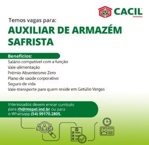 As empresas MEPEL e CACIL disponibilizam vagas.