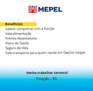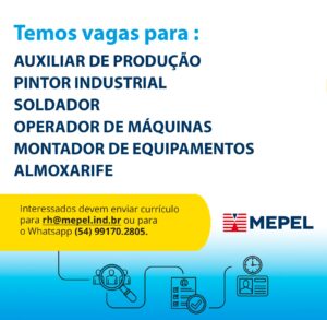 Envie seu currĆ­culo para rh@mepel.ind.br ou whats (54) 9.9170-2805.