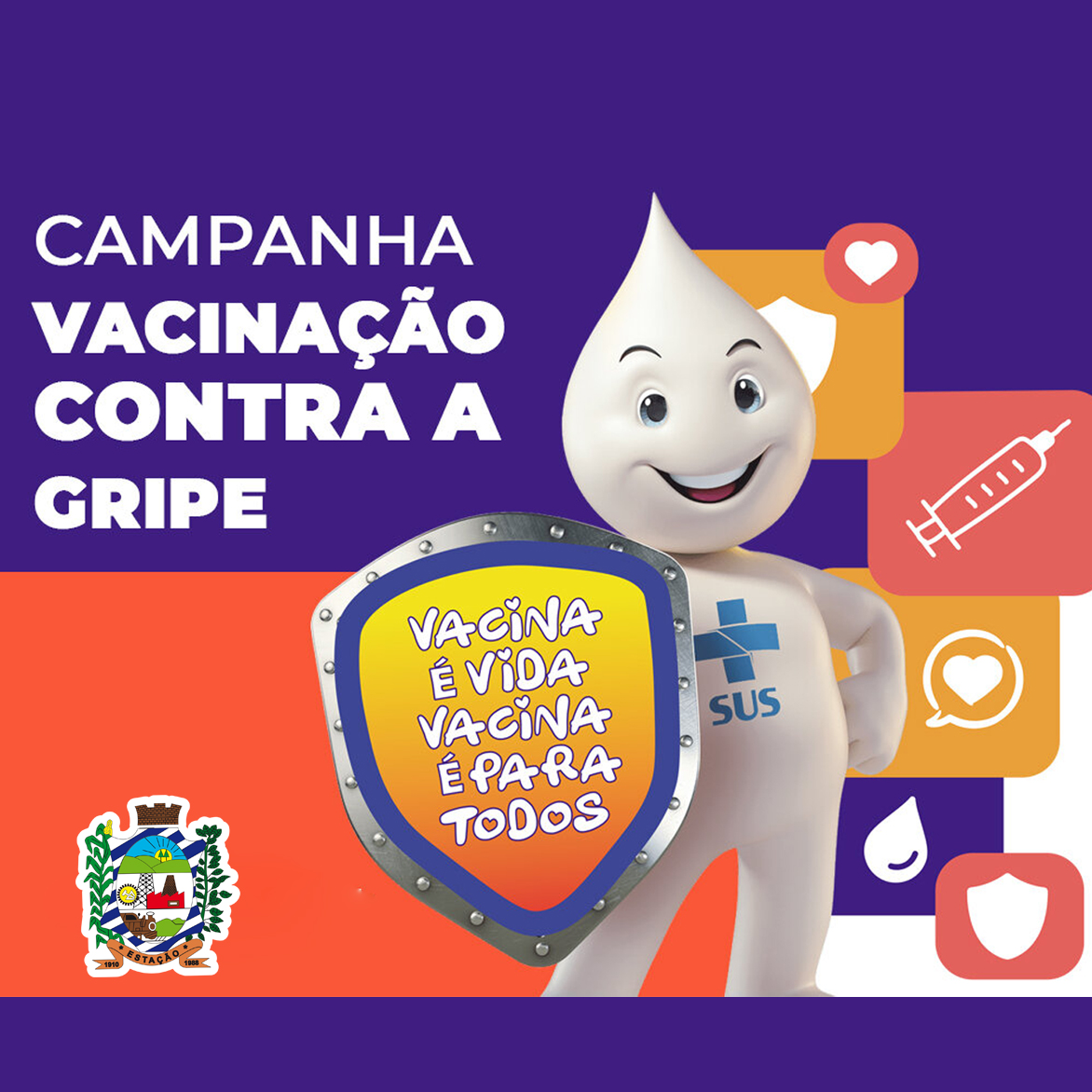 ✅ A Secretaria Municipal da Saúde informa que a vacina está disponível para toda a população acima de seis meses de idade.