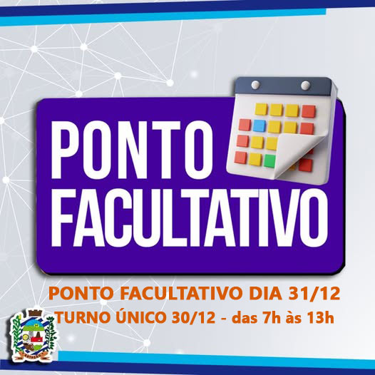 A Administração Municipal informa que na segunda-feira dia 30, conforme decreto 2202/2024, determina turno único nas repartições públicas do município, das 07h às 13h e no dia 31 ponto facultativo, sem expediente.