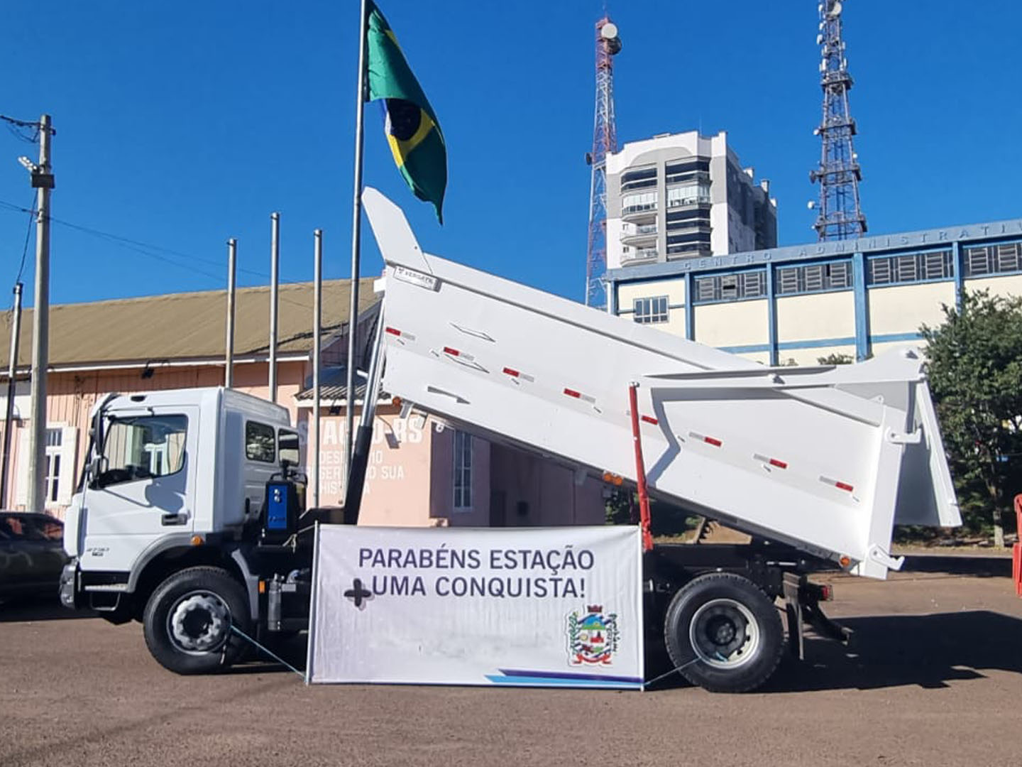 🚛 🤝 A Administração Municipal de Estação deu um passo importante na modernização da frota com a chegada de um novo caminhão Mercedes-Benz ATEGO 2730 K/36 6×4. Investimento de R$ 677 mil que vem para reforçar o trabalho do setor de serviços públicos, com foco principal na manutenção e distribuição de cascalho em nossas estradas do interior.