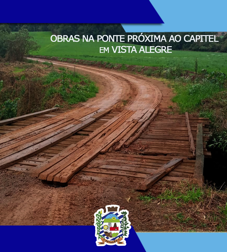 Hoje pela manhã a Secretaria de Obras, juntamente com a Secretaria da Agricultura e Meio está realizando obras de melhoria na ponte localizada próxima ao capitel de Vista Alegre, que faz divisa com Sertão.