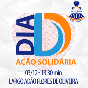 No dia 03 de dezembro acontecerá o dia “D AÇÃO SOLIDÁRIA”, convidamos todos para participar desta tarde que tem por objetivo fortalecer a cidadania. Será em frente à Ferroviária – Largo Adão Flores de Oliveira, a partir das 13h30min, com diversos serviços gratuitos disponíveis, passeio de dindinho, mateada – com a ervateira Basso, brinquedos infláveis, apresentação da Invernada Artística do