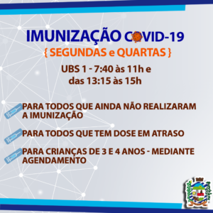 A Secretaria Municipal de Saúde informa que nas segundas aplica a imunização contra Covid-19, para: 💉 Adolescentes acima de 12 anos que fizeram somente duas doses; 💉 Pessoas acima de 40 anos; 💉 e 18 anos + que são portadores de comorbidades. INFORMAÇÕES 📞 na UBS 1 (54) 9 9937-0732 😷
