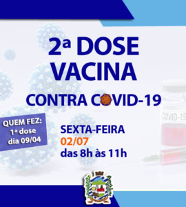 A Secretaria da Saúde de Estação informa que a imunização contra a COVID-19 acontecerá na sexta-feira de tarde – 👉 dia 02/07 para as idades de 49 a 53 anos, das 13:30 às 16h. 🕗   🚘 no sistema drive-thru, ou seja, dentro dos carros, em sua respectivas Unidades Básicas de Saúde.   Caso tenha dúvidas, por favor ligar e