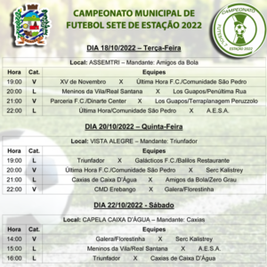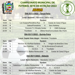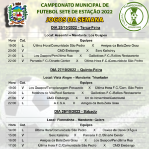 CAMPEONATO MUNICIPAL DE FUTEBOL SETE DE ESTAÇÃO 2022⚽️ Confira os resultados e os jogos da semana!