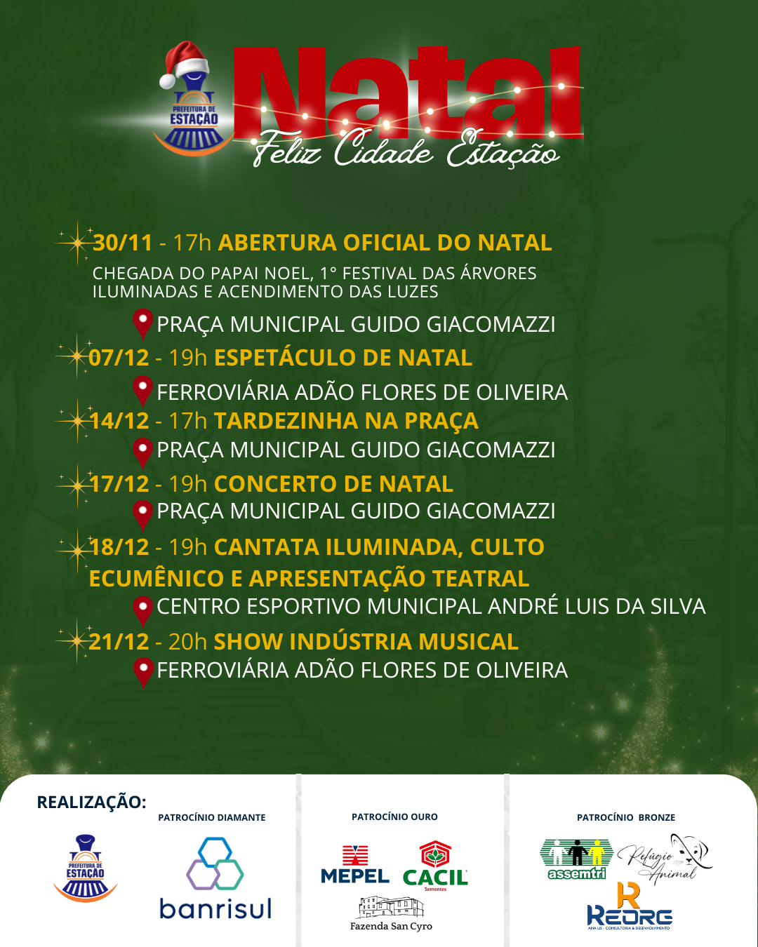 VEM AÍ A GRANDE ABERTURA OFICIAL DO “NATAL FELIZ CIDADE ESTAÇÃO”! 🥰🎅🎄🤶 dia 30/11