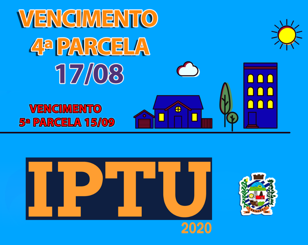 A Secretaria da Fazenda do Município de Estação informa aos senhores contribuintes que a 4ª parcela do IPTU 2020 vence dia 17 de agosto e a última parcela no dia 15 de setembro.